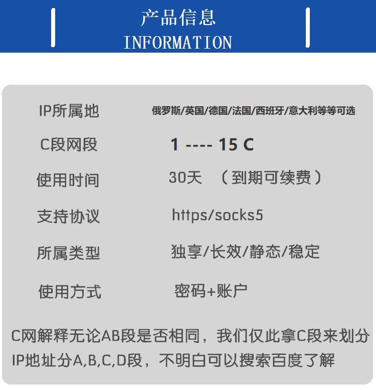 独享静态长效socks5/http(s)代理IP,美国,俄罗斯,欧美多国