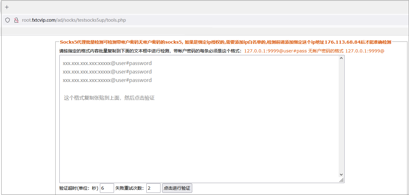 在线标准检测socks5代理IP,可以检测带有账户密码的Socks5